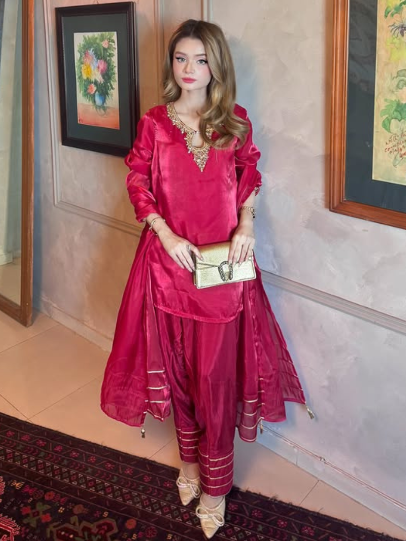 - 3pc Stitched Farshi Shalwar Dress - Ready to Wear