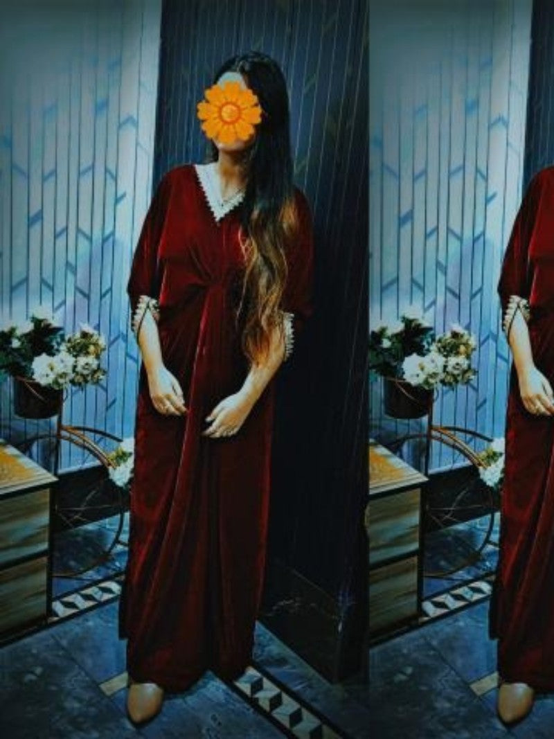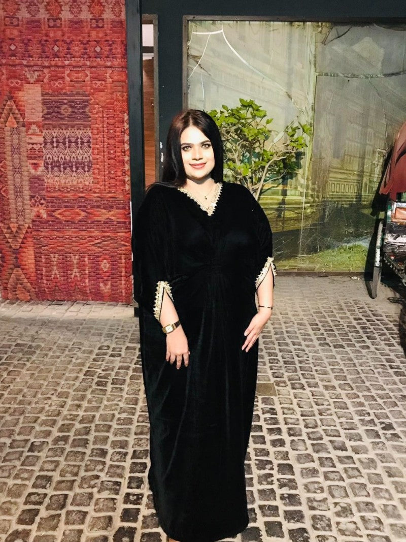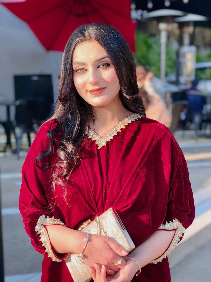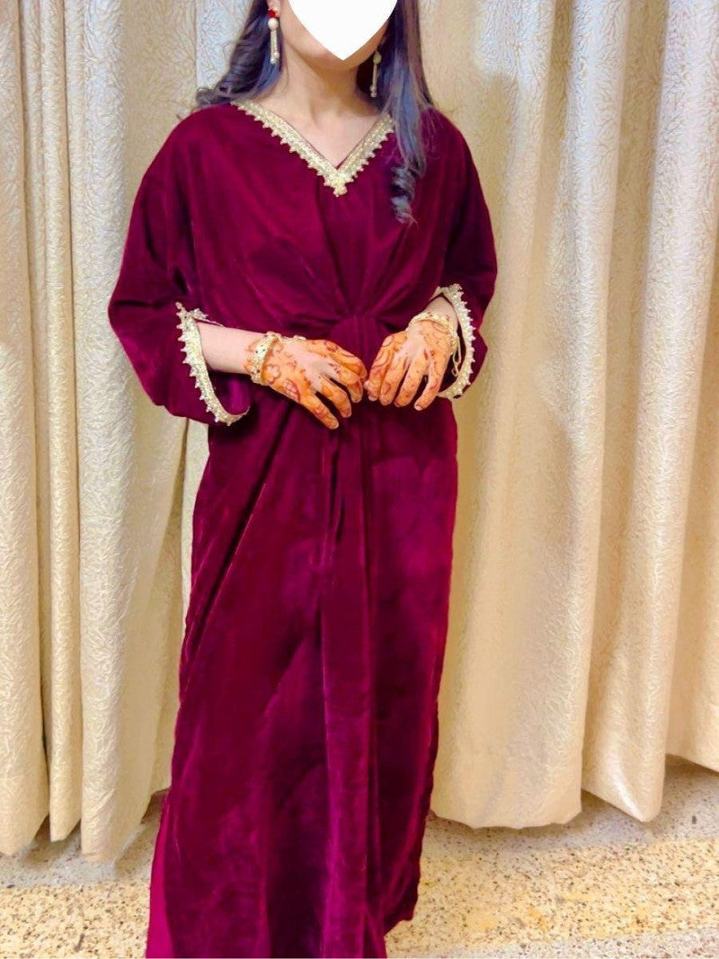 Embroidered Velvet Fuchsia Pink Kaftan