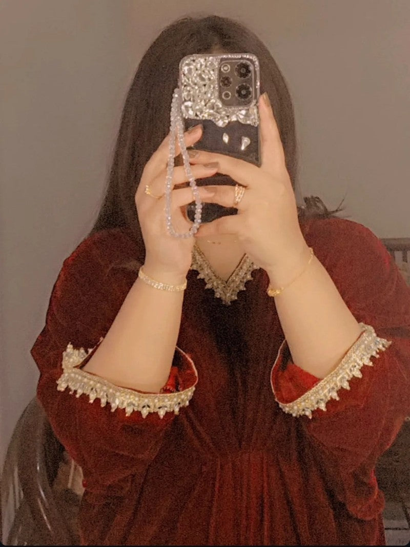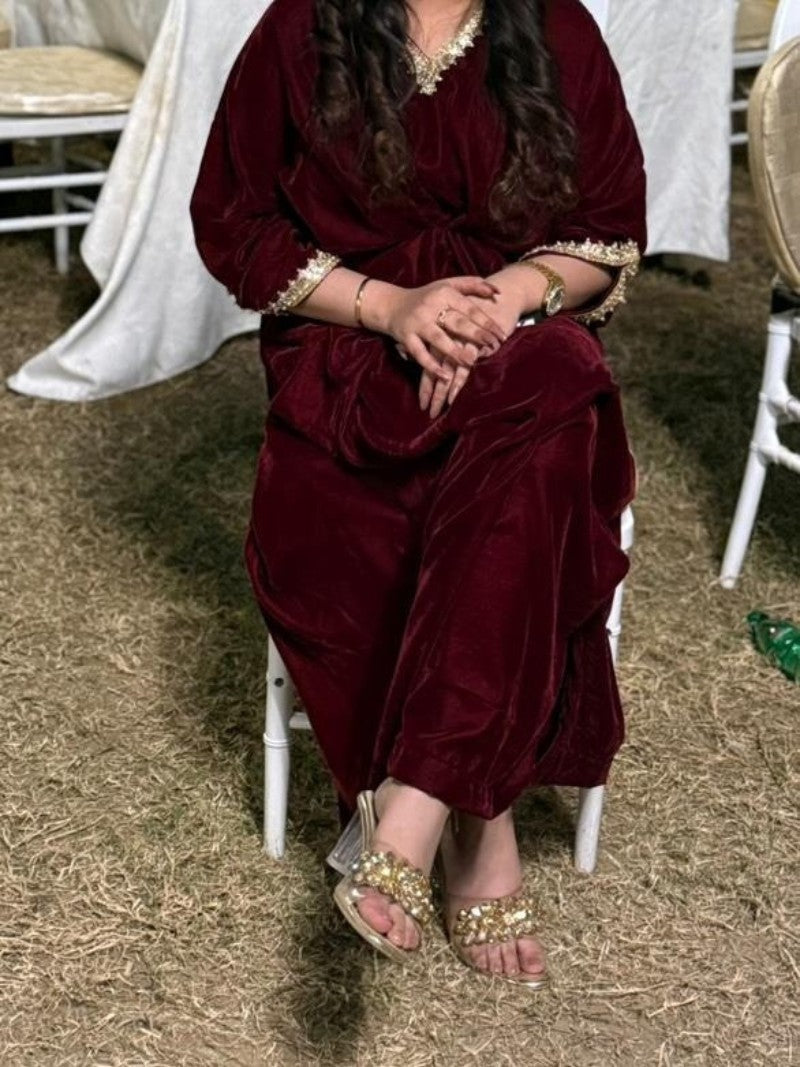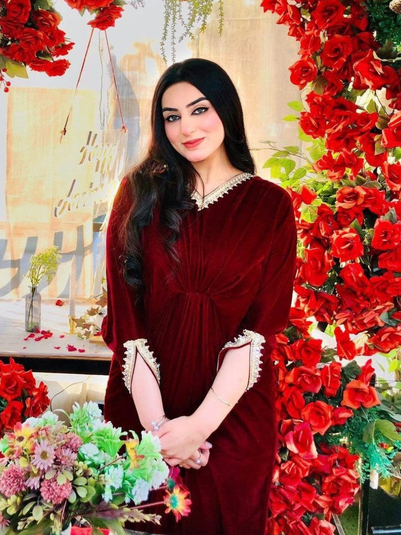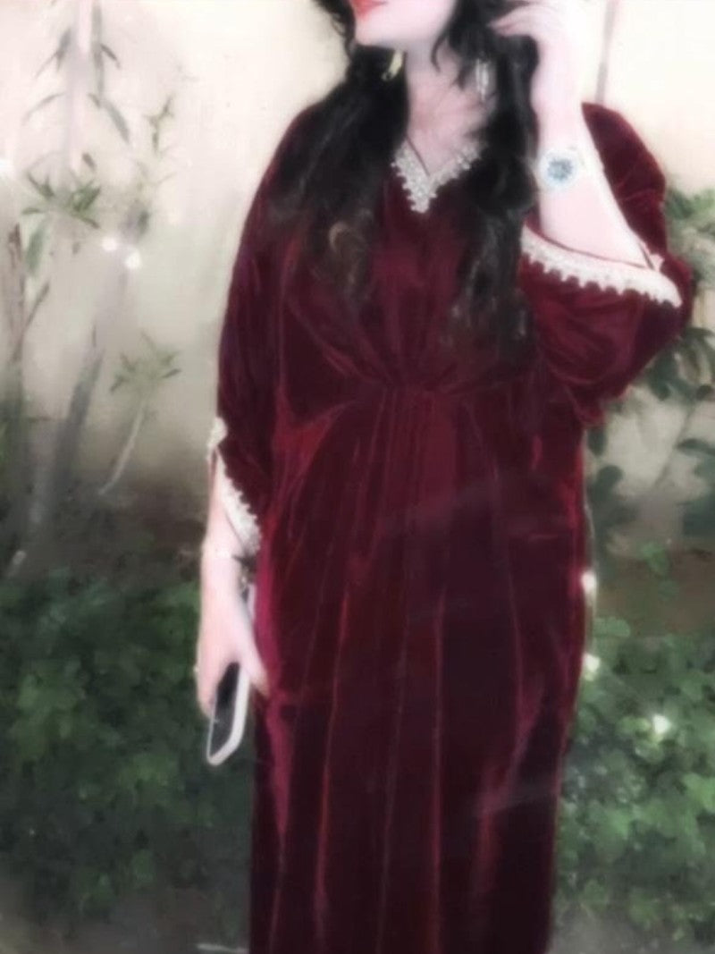 Embroidered Velvet Fuchsia Pink Kaftan