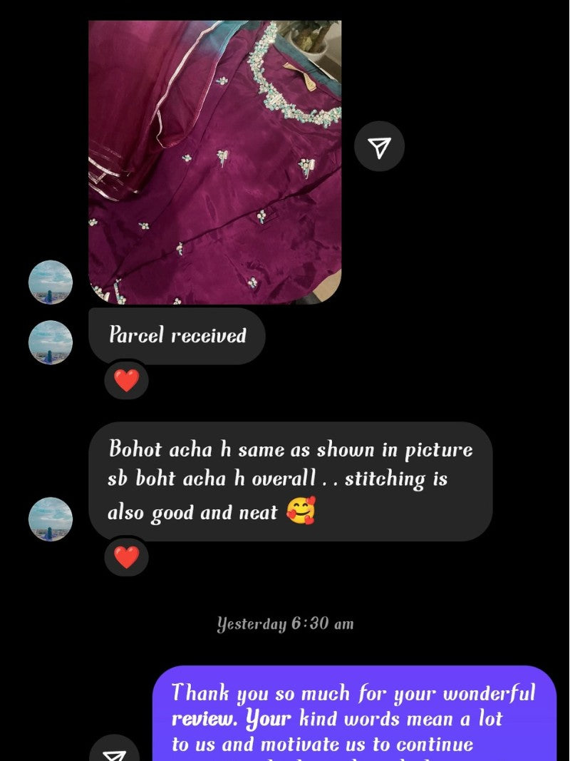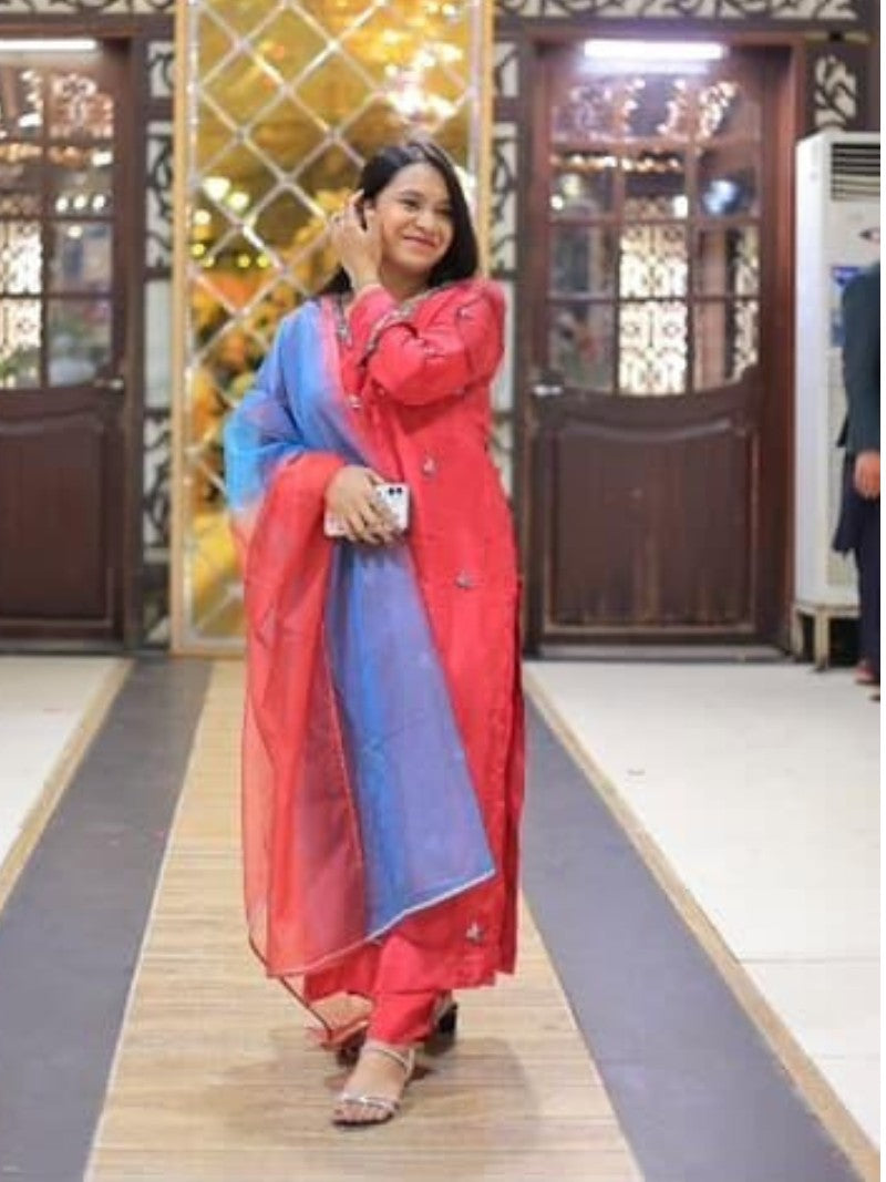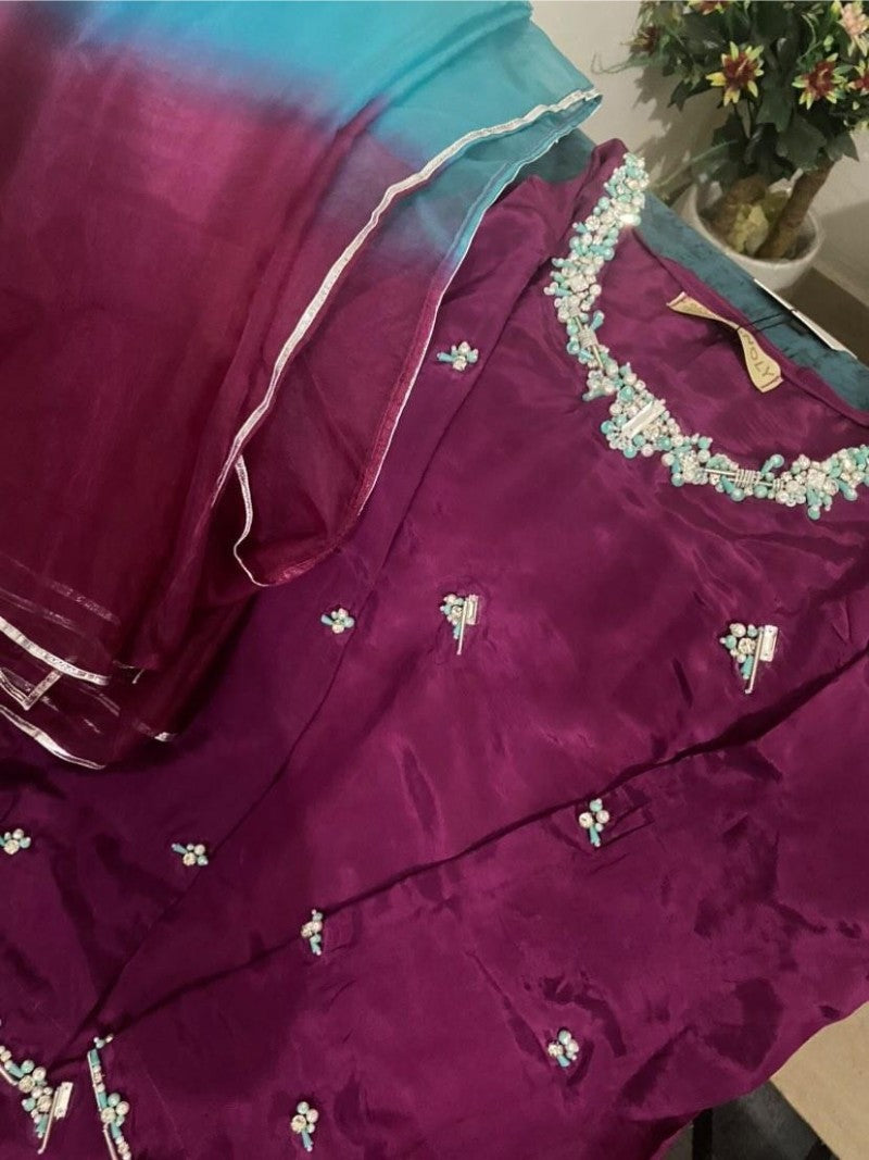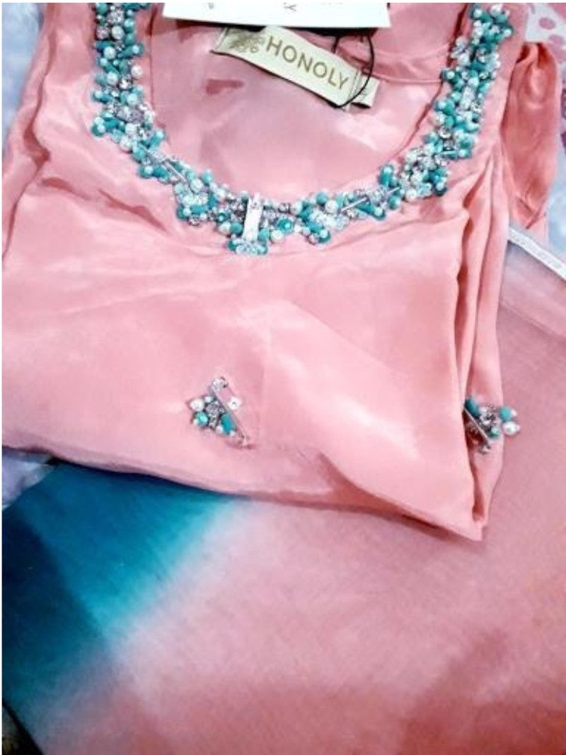 - Dupatta: Organza Dupatta Embellished with dhanak lace on all borders.