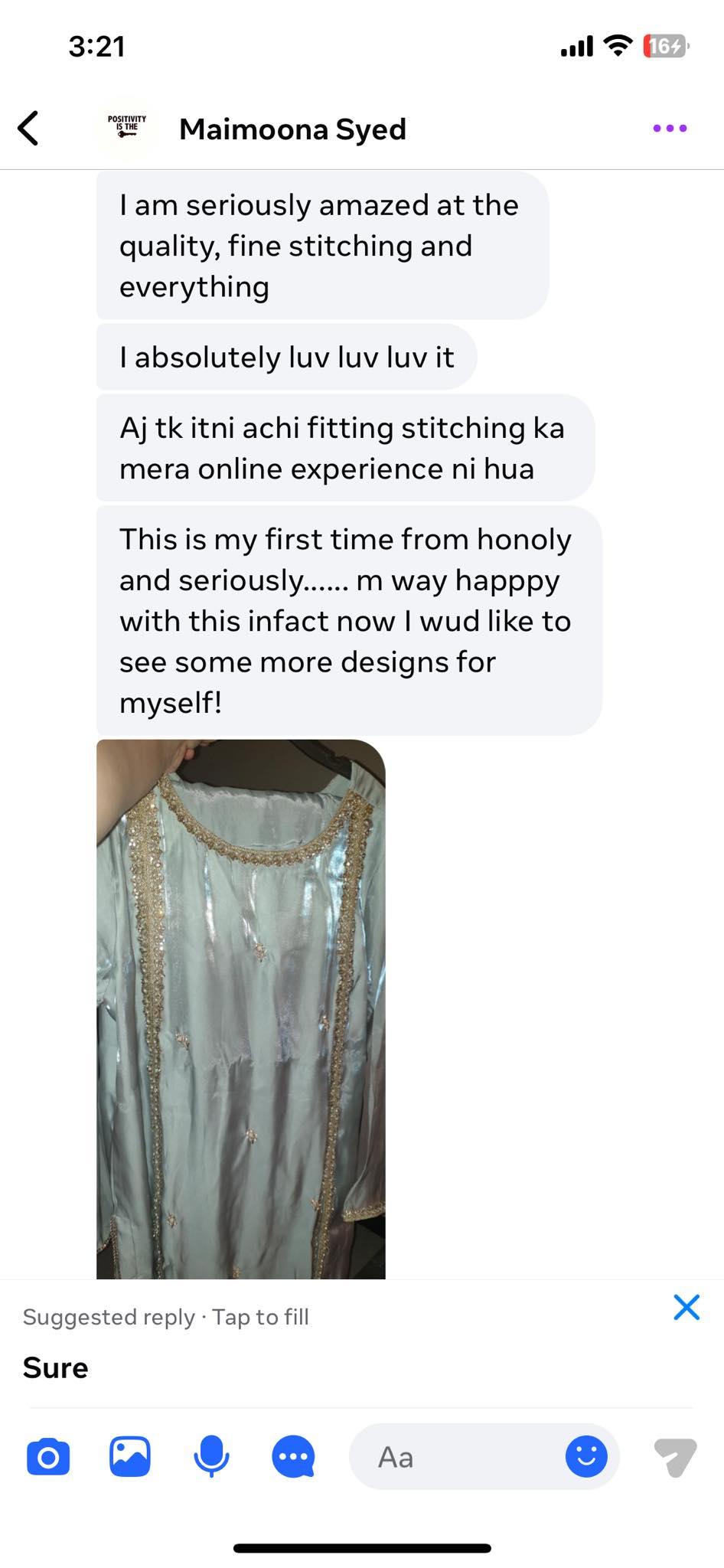 - Shirt: Korean Shamos Silk embellished with Hand Embroidered Stone.